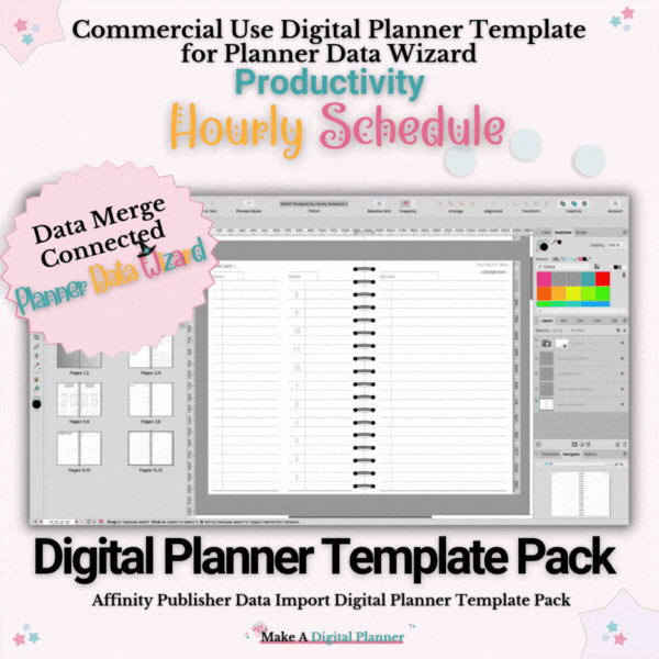 👉Affinity Publisher Hourly Schedule Digital Planner Template.